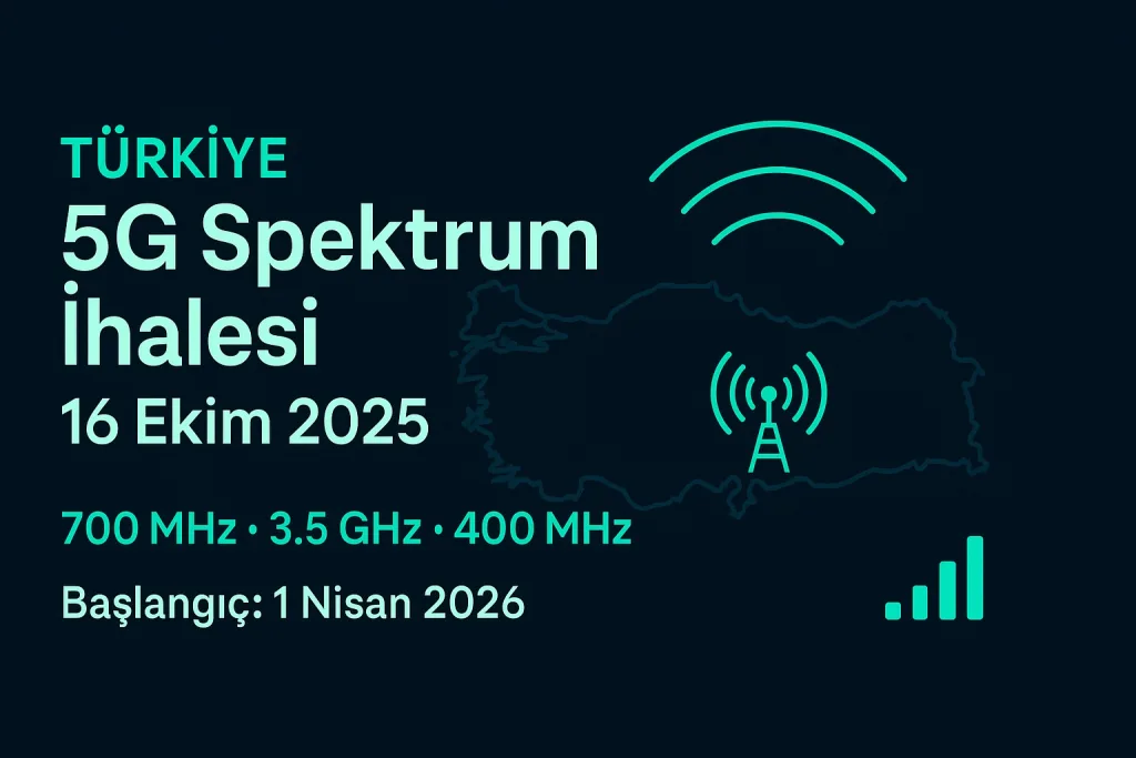 Türkiye, 5G takviminde son düzlüğe girdi. Ulaştırma ve Altyapı Bakanı Abdulkadir Uraloğlu16 Ekim 2025 tarihinde düzenlenecek ihaleyle 700 MHz ve 3.5 GHz bantlarında toplam 400 MHz frekansın işletmecilere tahsis edileceğini duyurdu. Bakan, 1 Nisan 2026 itibarıyla operatörlerin 5G hizmetini vatandaşlara sunmaya başlayacağını söyledi. Şartname ve ihale hükümleri Resmî Gazete’de yayımlanarak yürürlüğe girdi.
